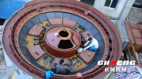 圖:上海寶鋼礦渣生產(chǎn)線中正在安裝的磨盤