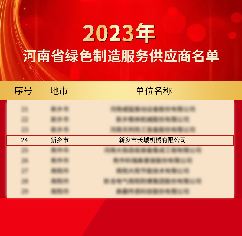 近期,河南省第一批綠色制造服務(wù)供應商評審結(jié)果進行公示,新鄉(xiāng)長城成功上榜!這是新鄉(xiāng)長城在綠色低碳發(fā)展領(lǐng)域獲得的又一殊榮。